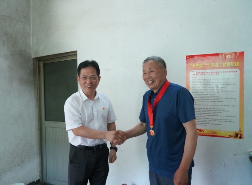 6月27日,市人大常委會(huì)主任孫海榮到三界鎮(zhèn)江東村看望老黨員胡紀(jì)云,胡紀(jì)云現(xiàn)已91歲高齡,曾擔(dān)任三界鎮(zhèn)橋墩村大隊(duì)長(zhǎng)、村書記,孫海榮感謝他為集體作出的貢獻(xiàn),同時(shí)囑咐他要多保重身體。在蔣鎮(zhèn)村黨員周明生家中,孫海榮囑咐鎮(zhèn)村干部要多關(guān)心、關(guān)懷老同志的實(shí)際困難。隨后,孫海榮來(lái)到靈芝村老黨員祝愛(ài)根家中慰問(wèn),祝愛(ài)根1971年當(dāng)兵,是老撾?yún)?zhàn)人員,退伍后積極參與村莊建設(shè),在群眾中起到了表率作用,孫海榮與祝愛(ài)根親切交談,并為他戴上“光榮在黨50年”紀(jì)念章,祝福老人生活幸福、健康長(zhǎng)壽。