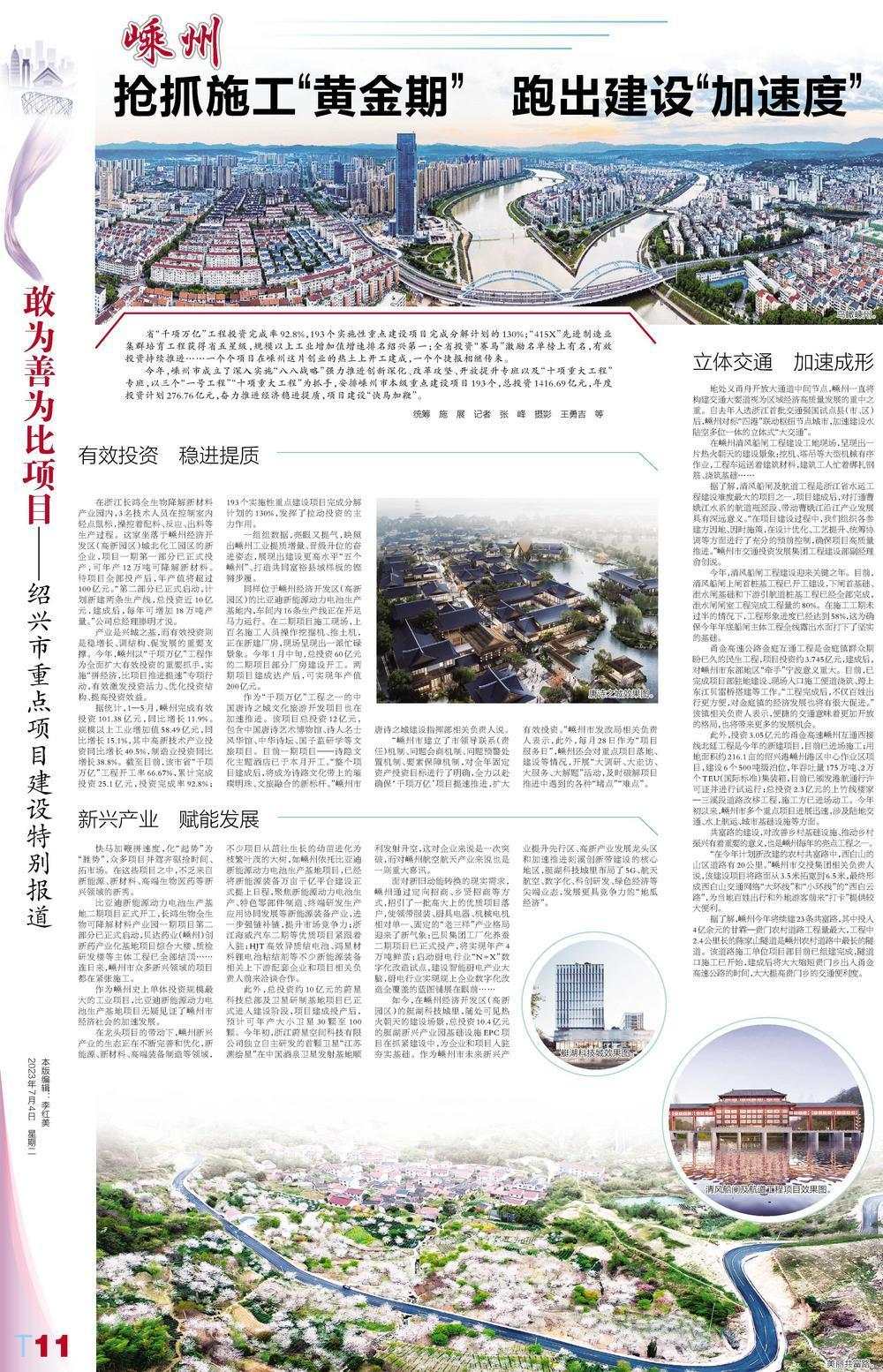 產(chǎn)業(yè)是興城之基,而有效投資則是穩(wěn)增長、調(diào)結(jié)構(gòu)、促發(fā)展的重要支撐。今年,嵊州以“千項(xiàng)萬億”工程作為全面擴(kuò)大有效投資的重要抓手,實(shí)施“拼經(jīng)濟(jì),比項(xiàng)目推進(jìn)提速”專項(xiàng)行動,有效激發(fā)投資活力、優(yōu)化投資結(jié)構(gòu)、提高投資效益。