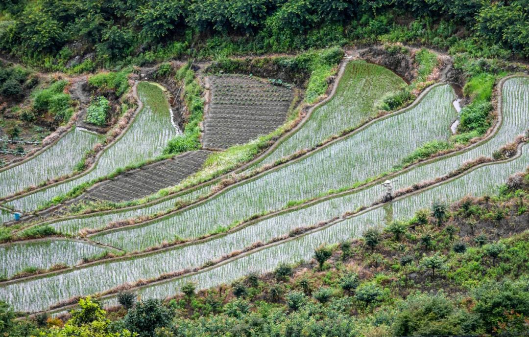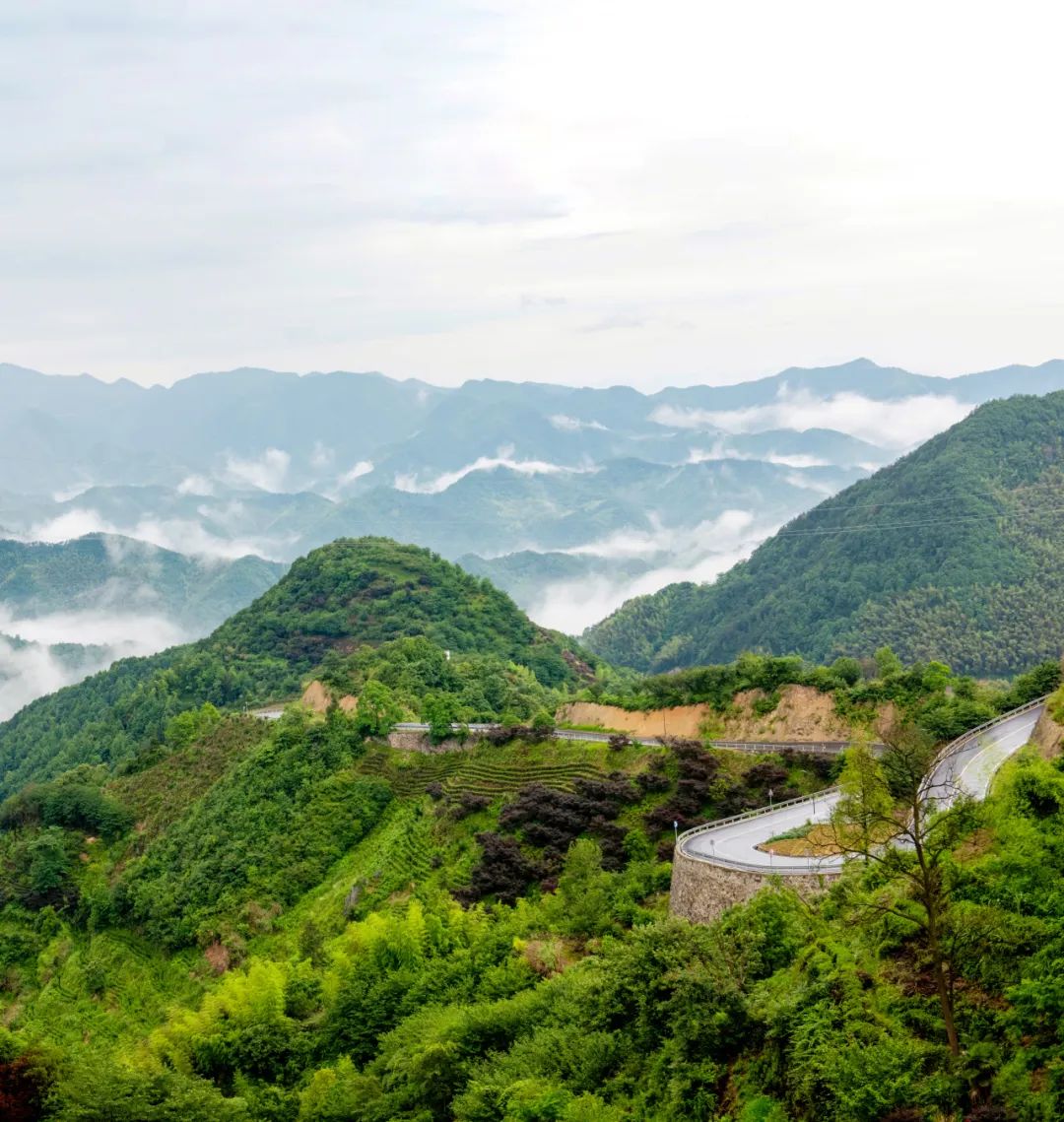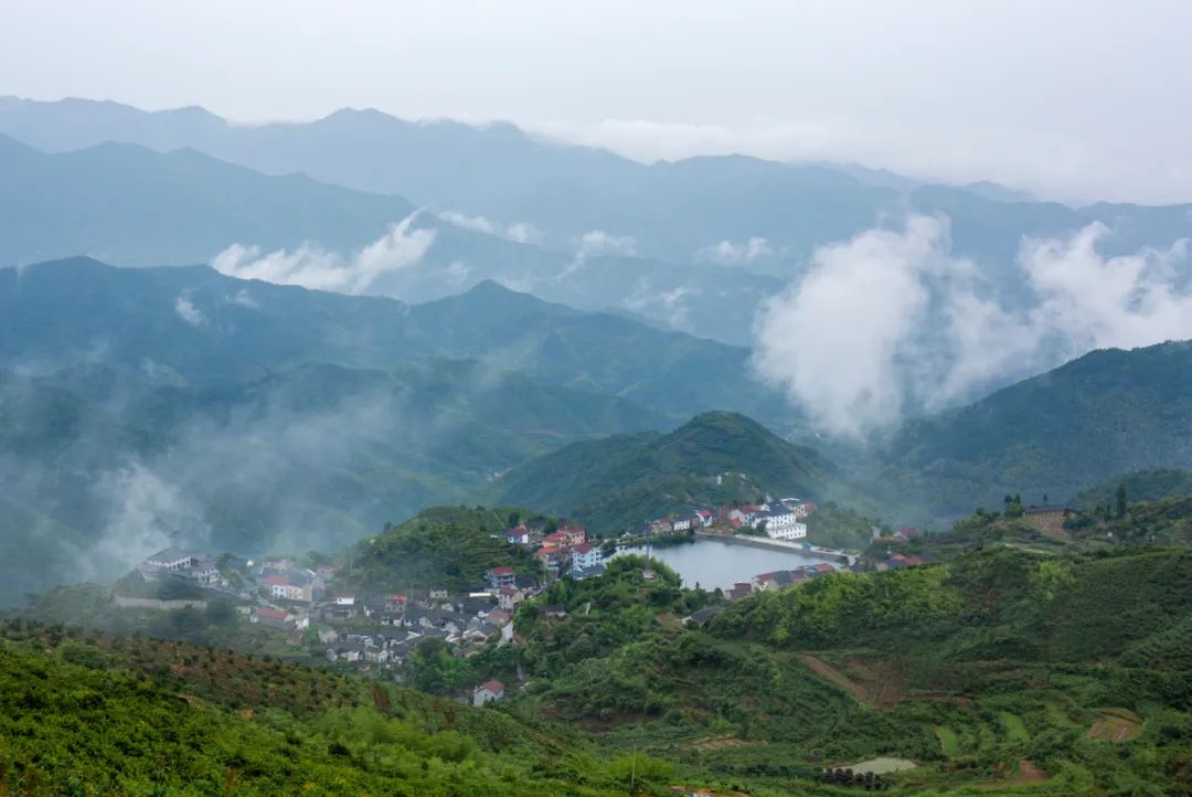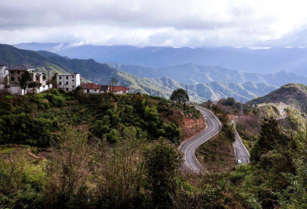 從覆卮山向南俯瞰,整個泉崗村盡收眼底:村口的友誼水庫,波光粼粼,清澈明凈;依山而建的民居,層層疊疊,錯落有致;穿過泉崗村的清白線公路(清風(fēng)——上虞白龍?zhí)叮┣垓暄?,盤山而上,仿若天路,至高山,至天上,至天上人間。