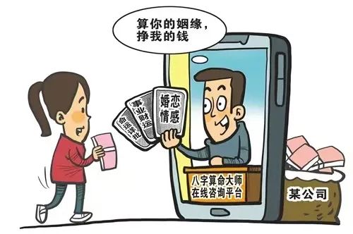近年來,互聯(lián)網(wǎng)上悄然流行起“網(wǎng)絡(luò)算命”,像人工智能看面相、專業(yè)軟件看指紋、手機(jī)APP判斷星座“運勢”等等,網(wǎng)站、小程序、自媒體平臺等渠道都有相關(guān)內(nèi)容。甚至還有一些平臺、個人以此為噱頭引流,打造小有名氣的“網(wǎng)紅”?!熬W(wǎng)絡(luò)算命”方式多種多樣,收費也普遍偏高,多在千元以上,有的甚至半小時咨詢收費高達(dá)上萬元。此外,還有價格不菲的所謂“消災(zāi)物品”,其定價也遠(yuǎn)超市場同類產(chǎn)品。
