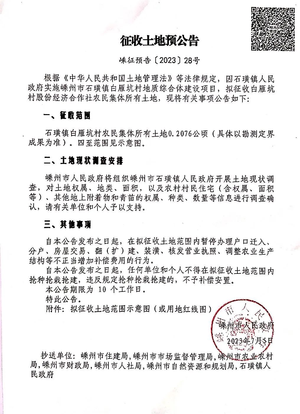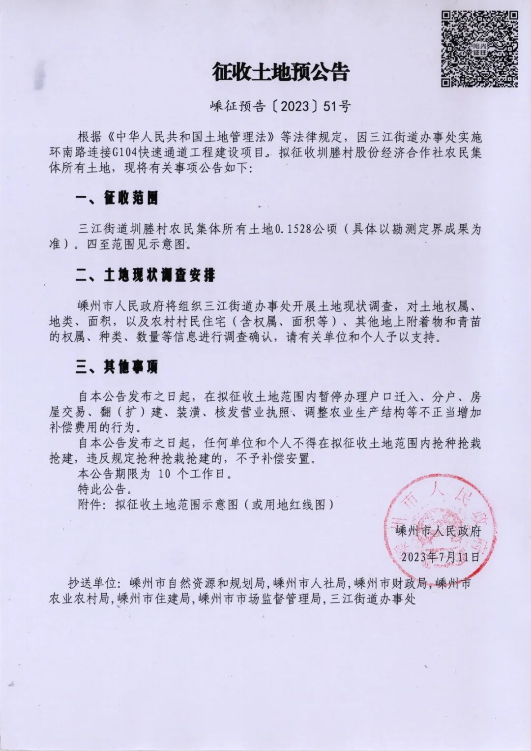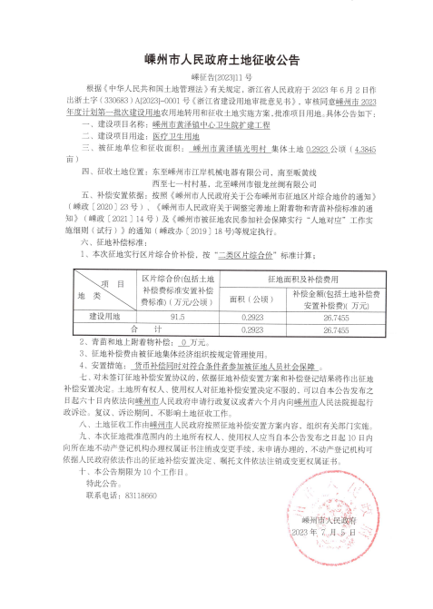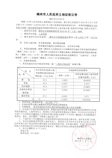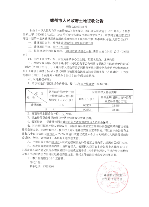 2023年度計(jì)劃第一批次土地征收公告