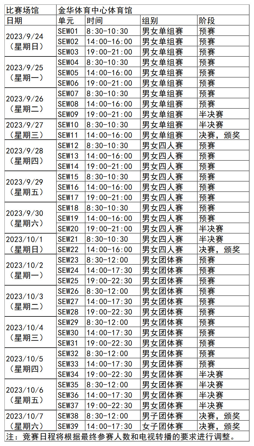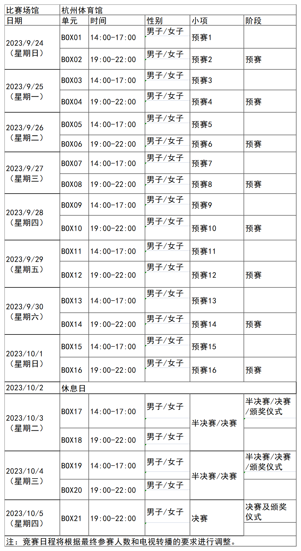 日前,杭州亞運(yùn)會(huì)官方網(wǎng)站陸續(xù)更新了一批比賽項(xiàng)目詳細(xì)賽程。