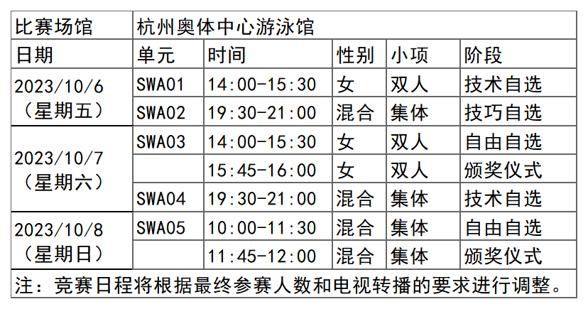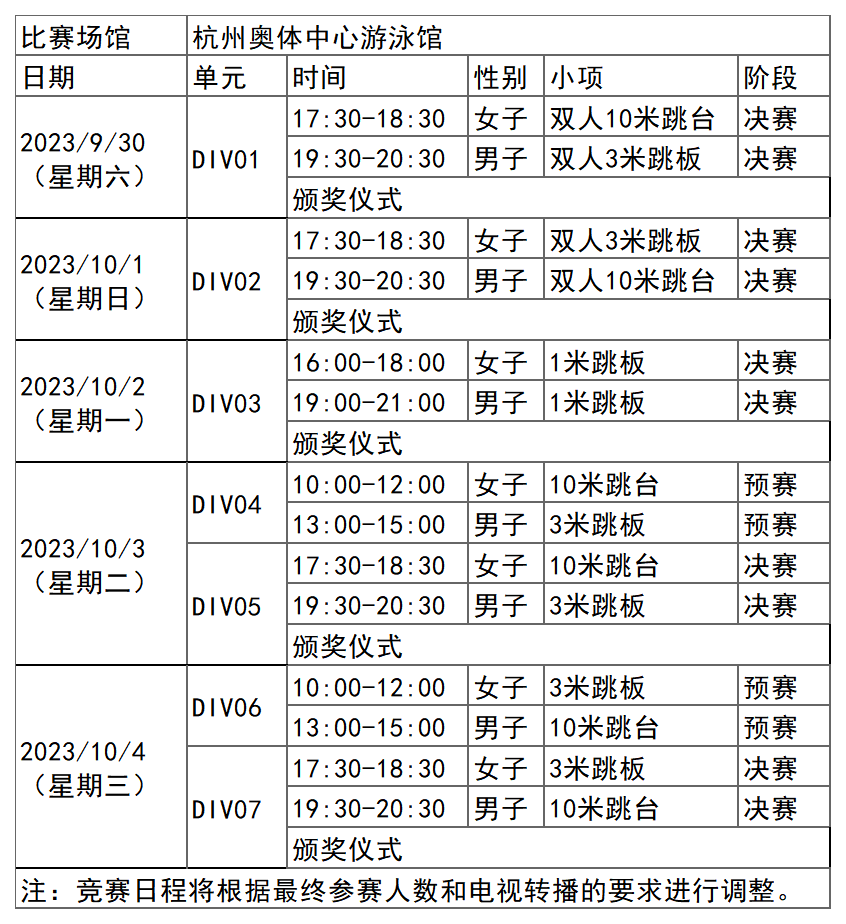 快收藏!又一批杭州亞運(yùn)會(huì)比賽項(xiàng)目詳細(xì)賽程公布:跳水、霹靂舞、花樣游泳……