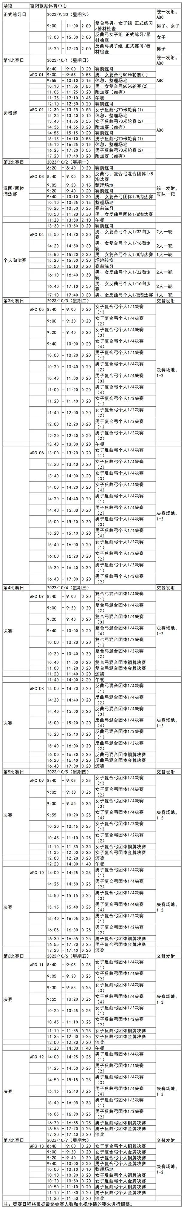 杭州亞運(yùn)會(huì)射箭項(xiàng)目比賽時(shí)間為10月1日-10月7日,在富陽銀湖體育中心舉行,共產(chǎn)生10枚金牌。