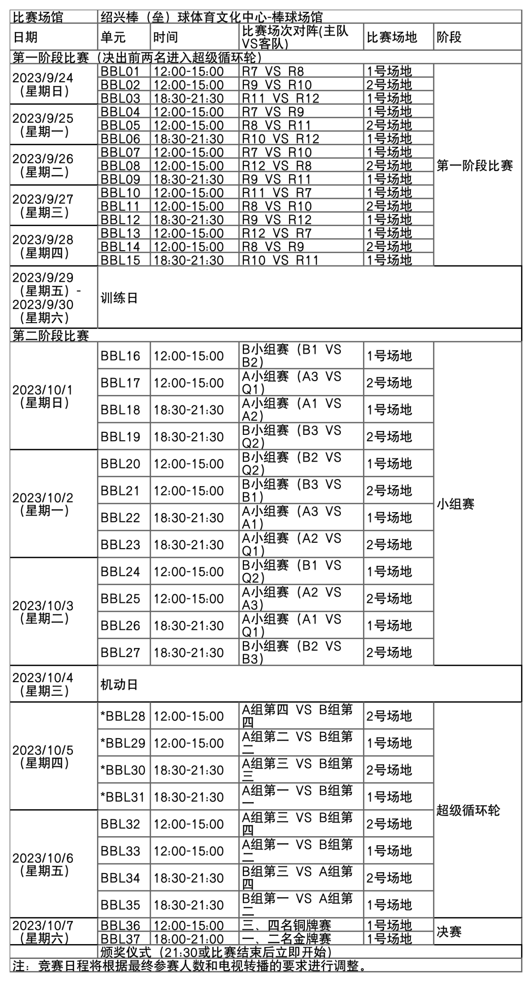 杭州亞運(yùn)會(huì)棒球項(xiàng)目比賽時(shí)間為9月24日-10月7日,在紹興棒(壘)球體育文化中心舉行,共產(chǎn)生1枚金牌。