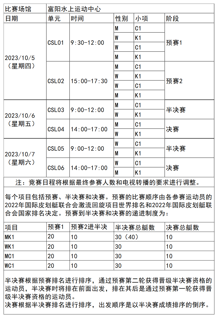 杭州亞運(yùn)會(huì)皮劃艇激流回旋項(xiàng)目比賽時(shí)間為10月5日-7日,在富陽水上運(yùn)動(dòng)中心舉行,共產(chǎn)生4枚金牌。