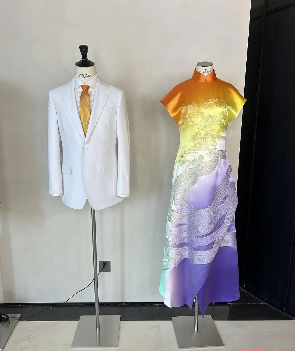 “像這些頒獎禮服,是從傳統(tǒng)旗袍改良而來,以‘虹韻紫、月桂黃、水墨白、湖山綠’的漸變配色,加上3D立體的水波紋、西湖十景等元素,盡顯杭州亞運會的韻味?!惫矩?fù)責(zé)人李雅建表示,前期對設(shè)計開發(fā)圖修改了幾百次,既用上了3D打印技術(shù),也請來老工匠手繪,經(jīng)過反復(fù)調(diào)整才達(dá)到了滿意效果,最近已經(jīng)到了最后的生產(chǎn)交付階段,目前生產(chǎn)已經(jīng)完成了70%左右。