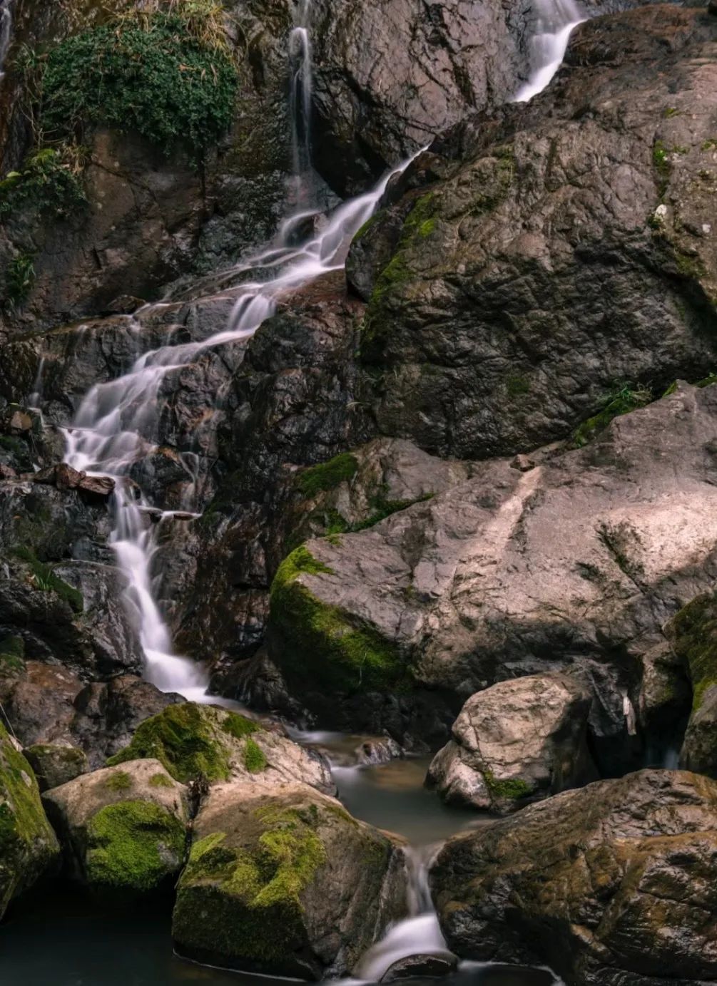 驅(qū)車(chē)登高,一段彎彎繞繞的盤(pán)山公路令人一路帶著欣喜,倚藍(lán)天、攬白云,走進(jìn)山林,遠(yuǎn)遠(yuǎn)就能聽(tīng)見(jiàn)瀑布飛流而下傳來(lái)的水聲,深吸一口氣,清新的空氣里滿是負(fù)氧離子。