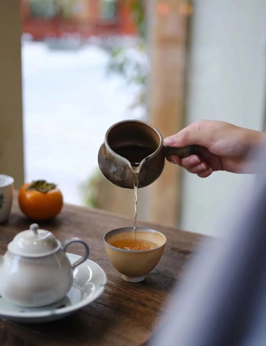 市心街的茶館,帶有靜謐的小院,環(huán)顧四周,如于市井開(kāi)辟絕塵之境。沸水沖茶,茶葉似入水活魚(yú),幾經(jīng)沉浮,終抵達(dá)壺底歸于平靜。紫砂青瓷,杯盞交錯(cuò),東式清雅,茶香沁脾。