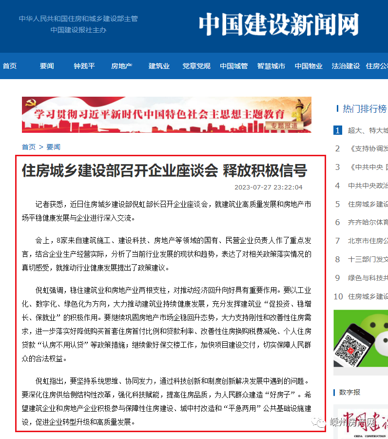 繼7月24日,官方釋放適時調(diào)整優(yōu)化房地產(chǎn)政策后,昨晚,住建局再發(fā)大招。