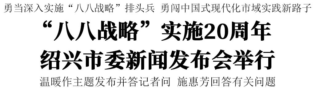 8月8日下午,“八八戰(zhàn)略”實(shí)施20周年紹興市委新聞發(fā)布會舉行,主題為“勇當(dāng)深入實(shí)施‘八八戰(zhàn)略’排頭兵 勇闖中國式現(xiàn)代化市域?qū)嵺`新路子”。