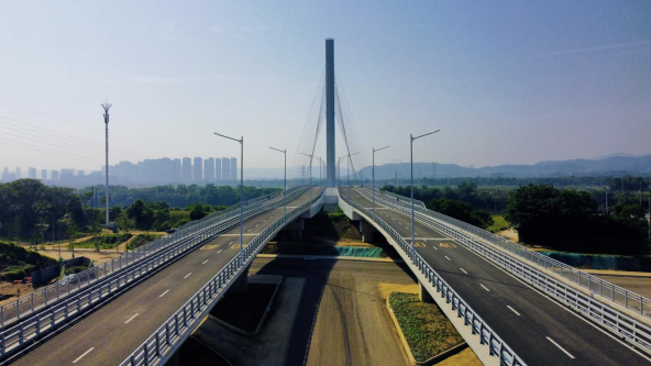 嵊州市小砩橋工程由城南建設投資有限公司投資建設,南起問越路(麗湖段),北至嵊義線,橫跨澄潭江,全長890米,是連接城西新區(qū)C街區(qū)和麗湖片區(qū)的重要通道。主橋為106米的獨塔斜拉橋,主梁為鋼箱梁,橋梁寬度為36米,概算投資為36167萬元。主橋于2021年10月29日開工,2022年12月24日竣工。“麗湖”一詞首見于邑志,當在明萬歷十六年(1588),迄今435年。據(jù)〔明〕萬歷《嵊縣志》卷之三:“塘,愛湖塘、麗湖塘、東湖塘、西湖塘、廣利塘……”又據(jù)〔清〕道光《嵊縣志》卷一:“艇湖,舊曰并湖,寶湖,愛湖,麗湖,東湖,西湖,廣利湖,羅洋湖?!苯癫捎闷湟蛔鞔髽蛑?。該大橋位于鹿山街道小砩通三江街道南田的澄潭江之上,東有新昌江自南北流匯入。南田區(qū)塊“城中村”有機更新完成后,此地擬規(guī)劃建設為麗湖片區(qū),隔新昌江與麗湖片區(qū)相望。現(xiàn)嵊州市人民醫(yī)院(浙大一院嵊州分院)一側(cè)有住宅小區(qū)名麗湖,由小區(qū)而名片區(qū)順理成章。麗湖片區(qū)是今后一個時期嵊州城市發(fā)展核心區(qū),建成后將形成三江六岸獨特的現(xiàn)代景觀。橋成通衢,北聯(lián)小砩,南抵南田,這二處地名雖然寓意和紀念意義兼具,但以“小砩”和“南田”中的任何一個作為大橋之名,均失之偏頗,故以“麗湖”冠名大橋,不僅與所在片區(qū)名稱高度匹配,“麗湖”二字也與建成后該片區(qū)的剡溪水生態(tài)高度契合。麗湖大橋通車后,將進一步改善和提升嵊州市水系景觀,對完善地區(qū)綜合交通系統(tǒng)及片區(qū)開發(fā)發(fā)揮重要的先導作用,對打造具有深厚積淀、現(xiàn)代氣息、山水特質(zhì)的網(wǎng)絡型山水城市具有重要意義。嵊州市高鐵新城管理委員會