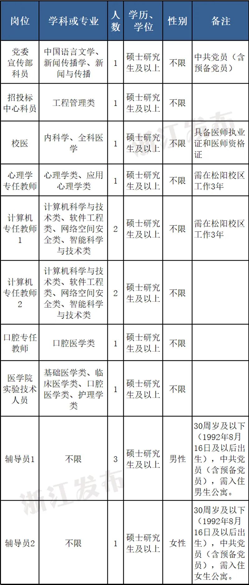麗水學(xué)院面向社會公開招聘工作人員14名,人員實(shí)行崗位聘用制。