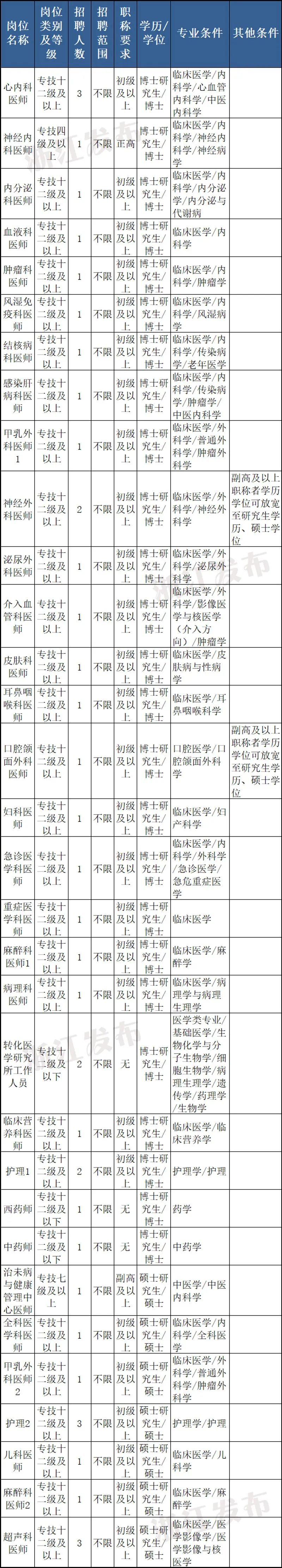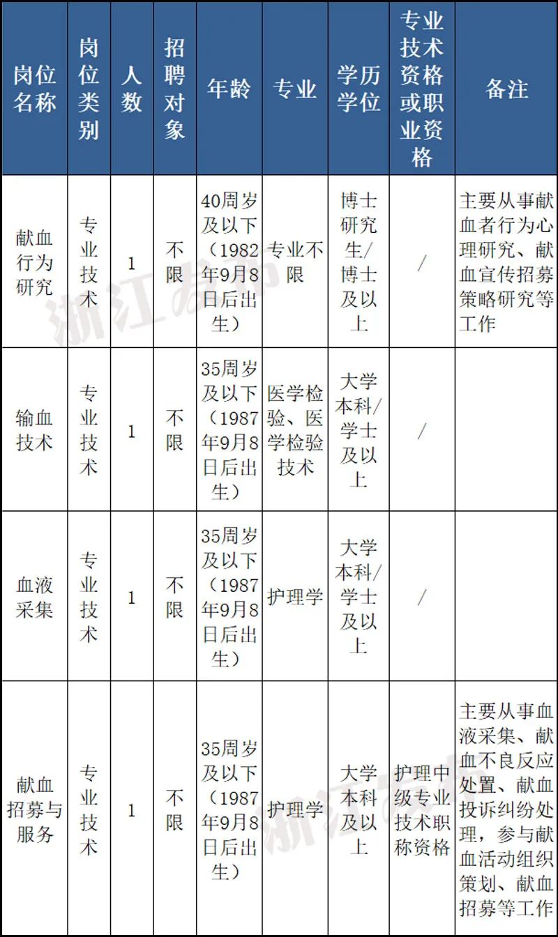 備注:(1)“學(xué)歷/學(xué)位”:指學(xué)歷學(xué)位的最低條件要求;(2)年齡要求:碩士及以下年齡要求35周歲以下(1987年7月1日以后出生);具有博士學(xué)歷學(xué)位或副高及以上職稱的45周歲以下(1977年7月1日以后出生);具有正高職稱者50周歲以下(1972年7月1日以后出生)。