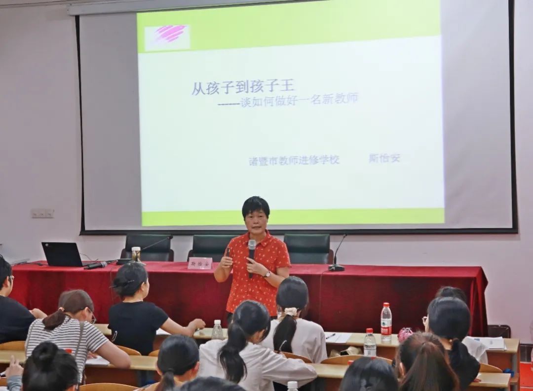 下午,諸暨市教師進(jìn)修學(xué)校副校長(zhǎng)斯怡安為新教師們作“從孩子到孩子王——談如何做好一名新教師”的專題講座。講座伊始,斯老師先從認(rèn)知、情感、意志力、行為四個(gè)角度對(duì)當(dāng)下孩子的特點(diǎn)進(jìn)行分析,指出教師應(yīng)針對(duì)學(xué)生的不同特點(diǎn),從專業(yè)上下功夫,適時(shí)轉(zhuǎn)變教學(xué)方式,盡量做到公平公正。她還從心理學(xué)角度指出教師是學(xué)生的重要他人,應(yīng)做到“心中有學(xué)生”,對(duì)講臺(tái)對(duì)教育懷有敬畏之心。此外,斯老師又從“傾聽”“用心”“勇敢”“寬恕”四個(gè)角度解讀了“教育”,并用身邊優(yōu)秀教師的例子著重強(qiáng)調(diào)教師應(yīng)用心傾聽、用心說話、用心做老師。