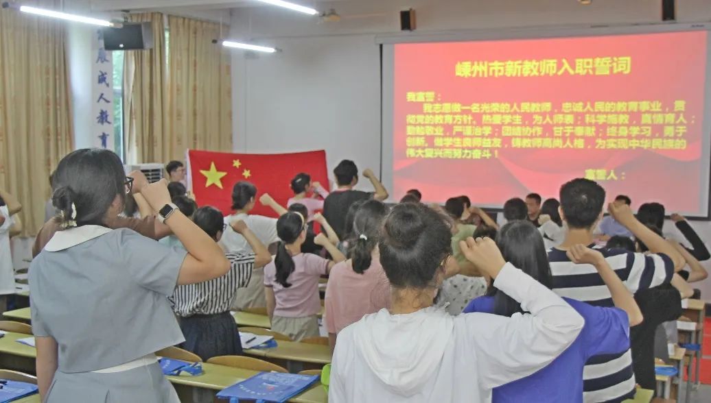 全體新入職教師進(jìn)行了莊嚴(yán)的入職宣誓。錚錚誓詞,鏗鏘有力,表達(dá)了新教師們踔厲奮發(fā),牢記黨的教育使命的堅(jiān)定信念和決心,用自信和擔(dān)當(dāng)吹響了教育新征程的號(hào)角。