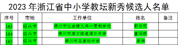 近日,浙江省教育廳發(fā)布《2023年浙江省中小學(xué)教壇新秀候選人名單公示》,經(jīng)推薦,擬確定282名教師為2023年浙江省中小學(xué)教壇新秀候選人,其中嵊州市共3名教師上榜,一起來(lái)看看。