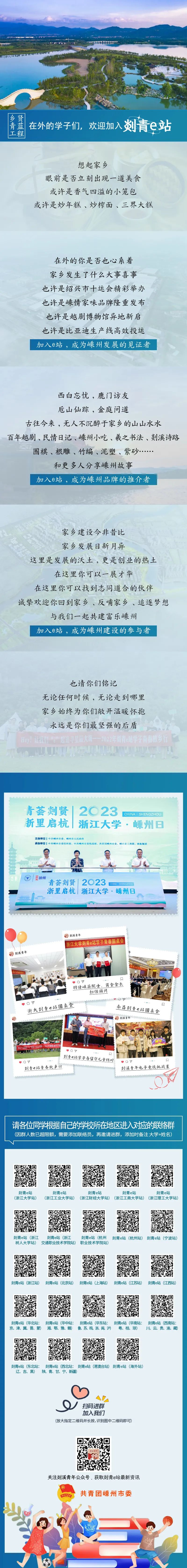 在市委、市政府的關(guān)心支持下,鄉(xiāng)賢青藍(lán)工程總站已于近日成立。情系桑梓,攜手共富。“剡青e站”自2022年啟動以來,始終致力于架起嵊籍學(xué)子、青年與家鄉(xiāng)的溝通橋梁,服務(wù)在外學(xué)子、招引青年人才、培育鄉(xiāng)賢新苗,目前已在北京、上海、杭州等26個省市及高校(包括港澳臺和海外站)建立了e站。在這里,大家可以更快的了解嵊州的最新變化,找到志同道合的伙伴,一鍵掌握人才政策,一圖通覽嵊州吃喝玩樂,期待更多的小伙伴加入我們,也希望萬能的圈友可以將此信息分享給你身邊嵊籍學(xué)子。