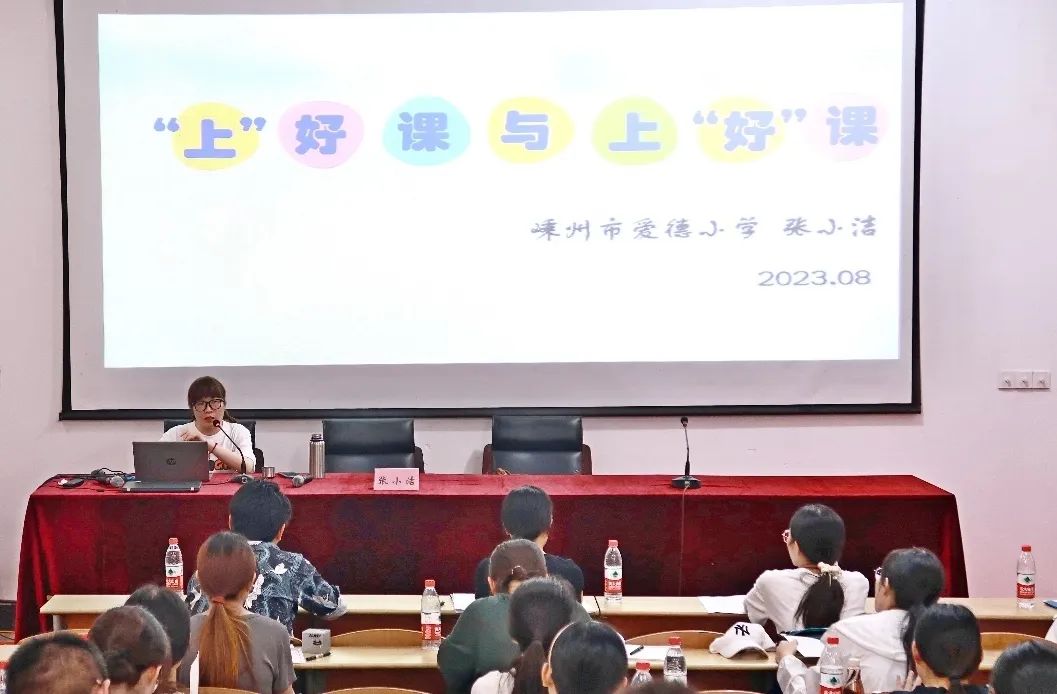 8月22日上午,中小學(xué)新教師集中學(xué)習(xí)了嵊州市愛(ài)德小學(xué)張小潔副校長(zhǎng)帶來(lái)的《“上”好課與上“好”課》專(zhuān)題講座。講座中,張老師就家常課、特殊課兩個(gè)方面分別進(jìn)行了講解。