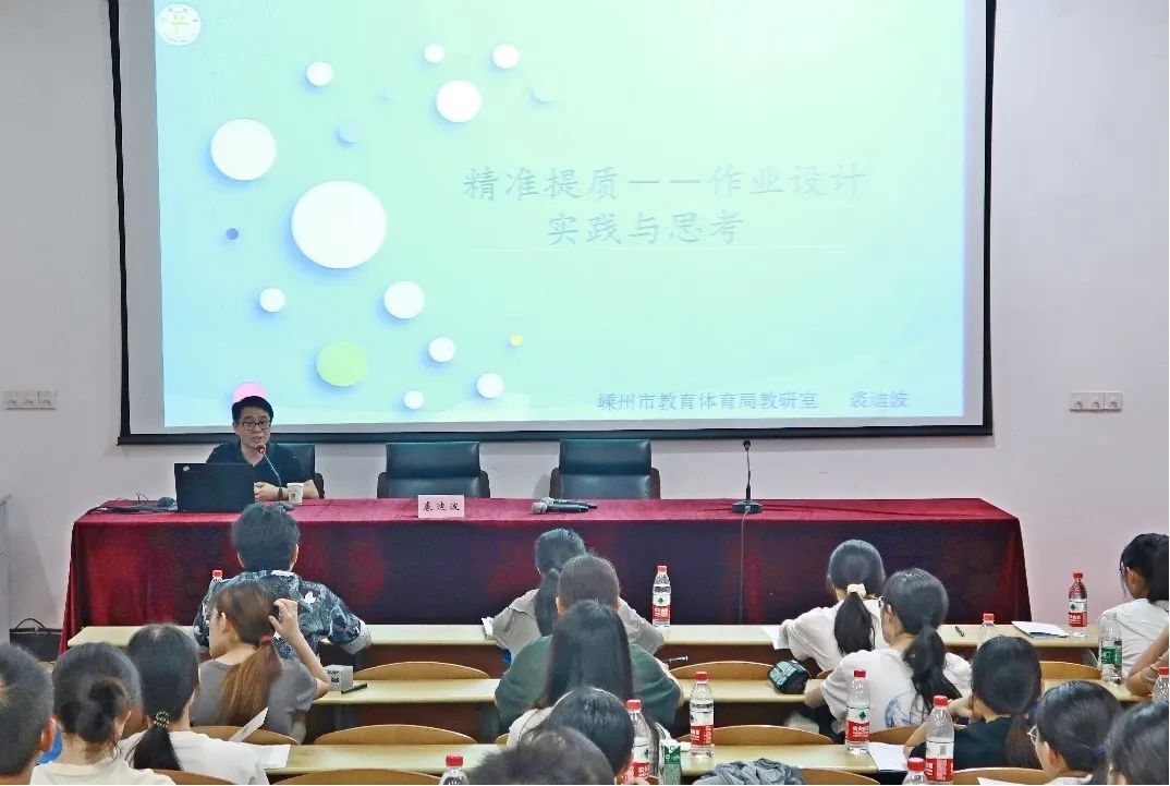 下午,嵊州市小學(xué)數(shù)學(xué)教研員裘迪波老師開(kāi)展了《精準(zhǔn)提質(zhì)——作業(yè)設(shè)計(jì)實(shí)踐與思考》專(zhuān)題講座。講座伊始,裘老師先指出了作業(yè)布置中存在的一些普遍現(xiàn)狀,并就如何應(yīng)對(duì)這些問(wèn)題提出了一些建議。