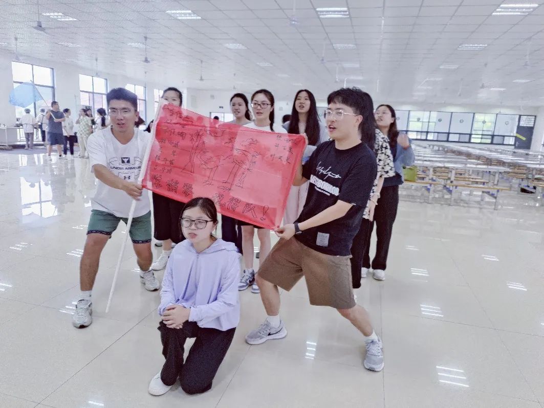 講座結(jié)束后,在青少年綜合實(shí)踐活動(dòng)中心張哲軍老師的帶領(lǐng)下,全體新教師開(kāi)展了團(tuán)體拓展活動(dòng)。新教師團(tuán)體首先根據(jù)昨天的分組進(jìn)行了節(jié)目展示,各個(gè)小組口號(hào)整齊響亮,隊(duì)歌富有新意,令人記憶深刻。接下來(lái)進(jìn)行了“無(wú)敵風(fēng)火輪”比賽,整個(gè)過(guò)程中,各組隊(duì)員齊心協(xié)力,展現(xiàn)出了較強(qiáng)的團(tuán)隊(duì)凝聚力。