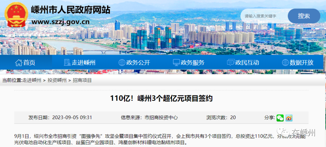 9月1日,紹興市全市招商引資“圖強(qiáng)爭先”攻堅會暨項目集中簽約儀式召開,會上我市共有3個項目簽約,總投資達(dá)110億元,分別為太陽能光伏電池自動化生產(chǎn)線項目、絲蛋白產(chǎn)業(yè)園項目、鴻星創(chuàng)新材料鋰電池黏結(jié)劑項目。