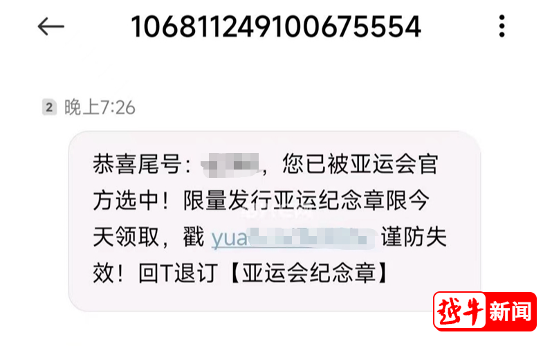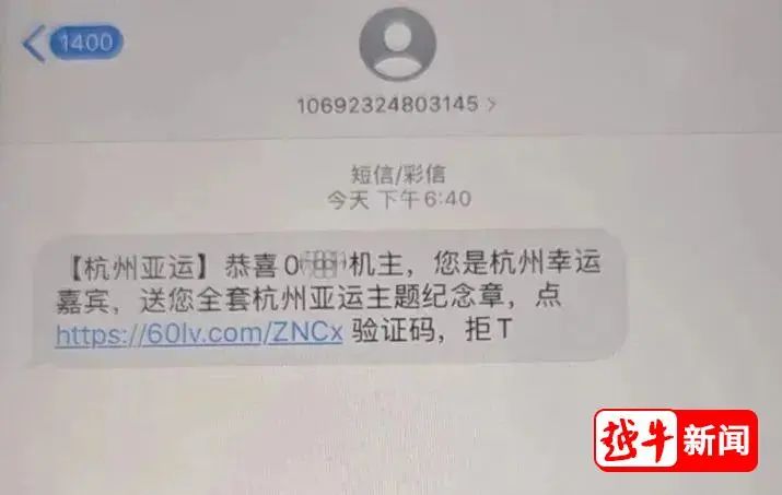 近日,嵊州有多位網(wǎng)友反映,收到了“中獎”短信,內(nèi)容為:“恭喜尾號:XXXX,您已被亞運(yùn)會官方選中!限量發(fā)行亞運(yùn)紀(jì)念章限今天領(lǐng)取?!辈⒏綆Я艘粭l鏈接。