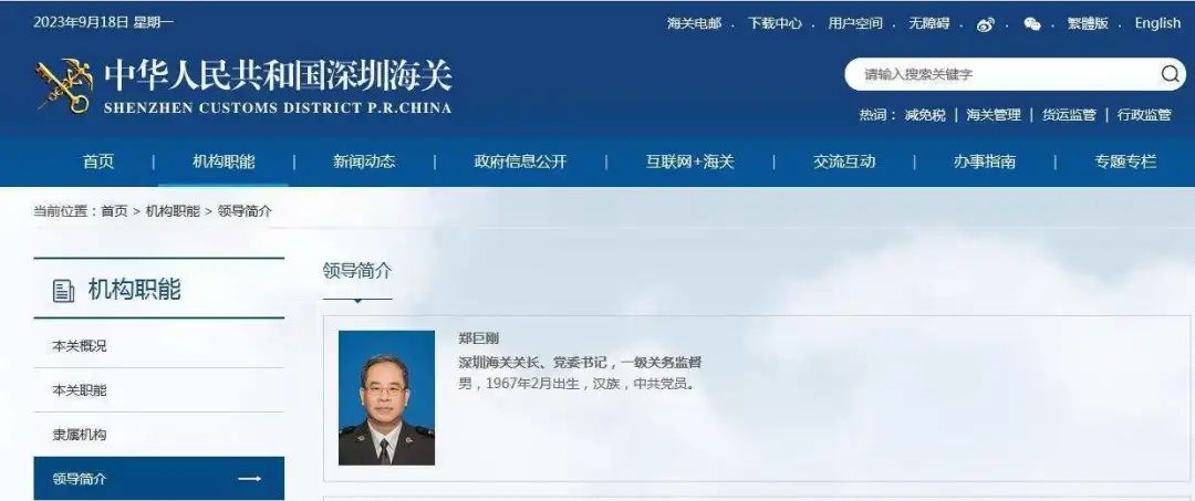 據(jù)深圳海關(guān)官網(wǎng)最新信息顯示,鄭巨剛已任深圳海關(guān)關(guān)長、黨委書記,一級(jí)關(guān)務(wù)監(jiān)督。