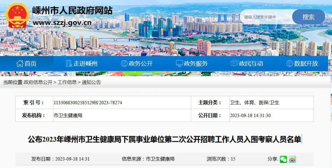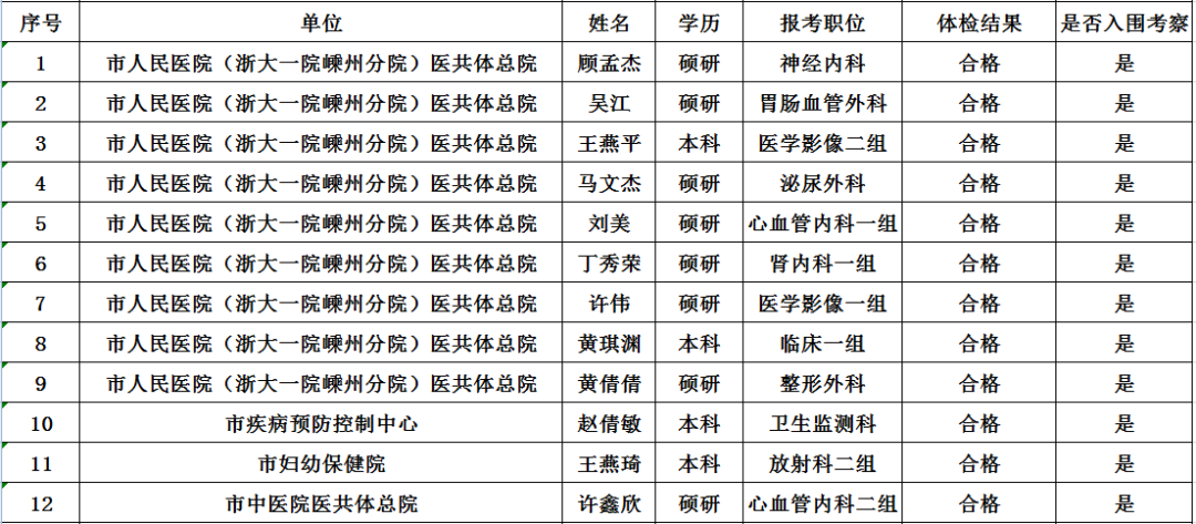 2023年嵊州市衛(wèi)生健康局下屬事業(yè)單位第二次公開(kāi)招聘工作人員入圍考察人員名單
