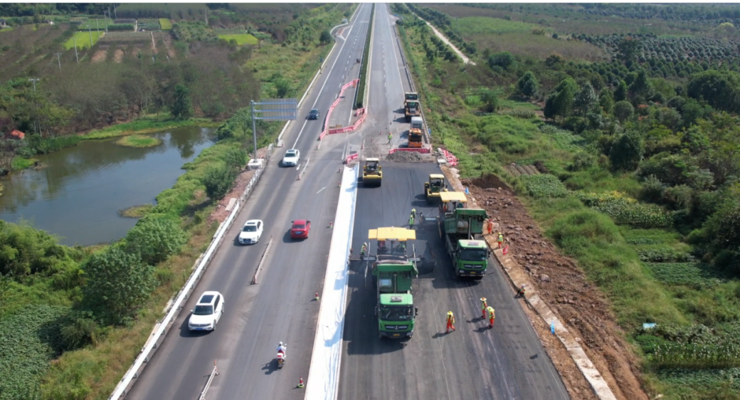 國(guó)慶長(zhǎng)假期間,在省重點(diǎn)工程527 國(guó)道嵊州甘霖至長(zhǎng)樂段,施工人員放棄休息,依舊忙碌在工地上,確保工程能提前完工。
