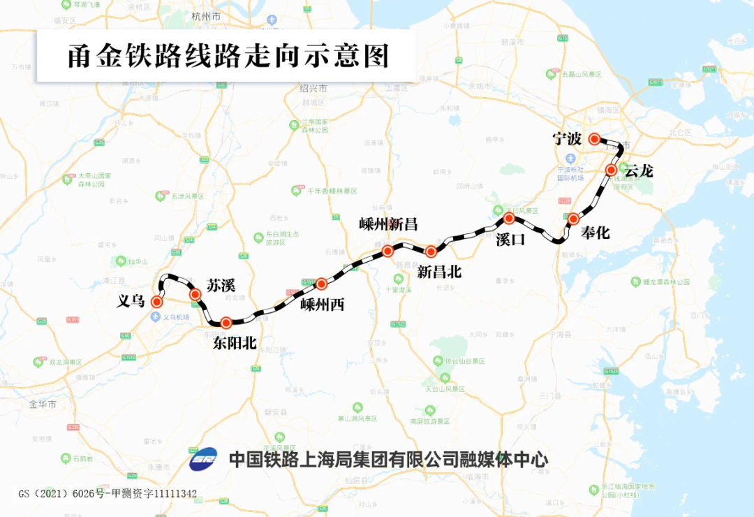 金甬鐵路全線設(shè)云龍(既有)、奉化(既有)、溪口、新昌北、嵊州新昌(既有)、嵊州西、東陽(yáng)北、蘇溪、義烏(既有)9個(gè)車(chē)站,設(shè)計(jì)時(shí)速160公里,預(yù)留200公里時(shí)速條件,為雙線客貨共線的I級(jí)電氣化鐵路。目前,項(xiàng)目正在開(kāi)展雙高箱集裝箱實(shí)驗(yàn)段動(dòng)態(tài)檢測(cè),預(yù)計(jì)今年年底將正式開(kāi)通運(yùn)營(yíng),全程用時(shí)僅需1小時(shí)29分鐘。