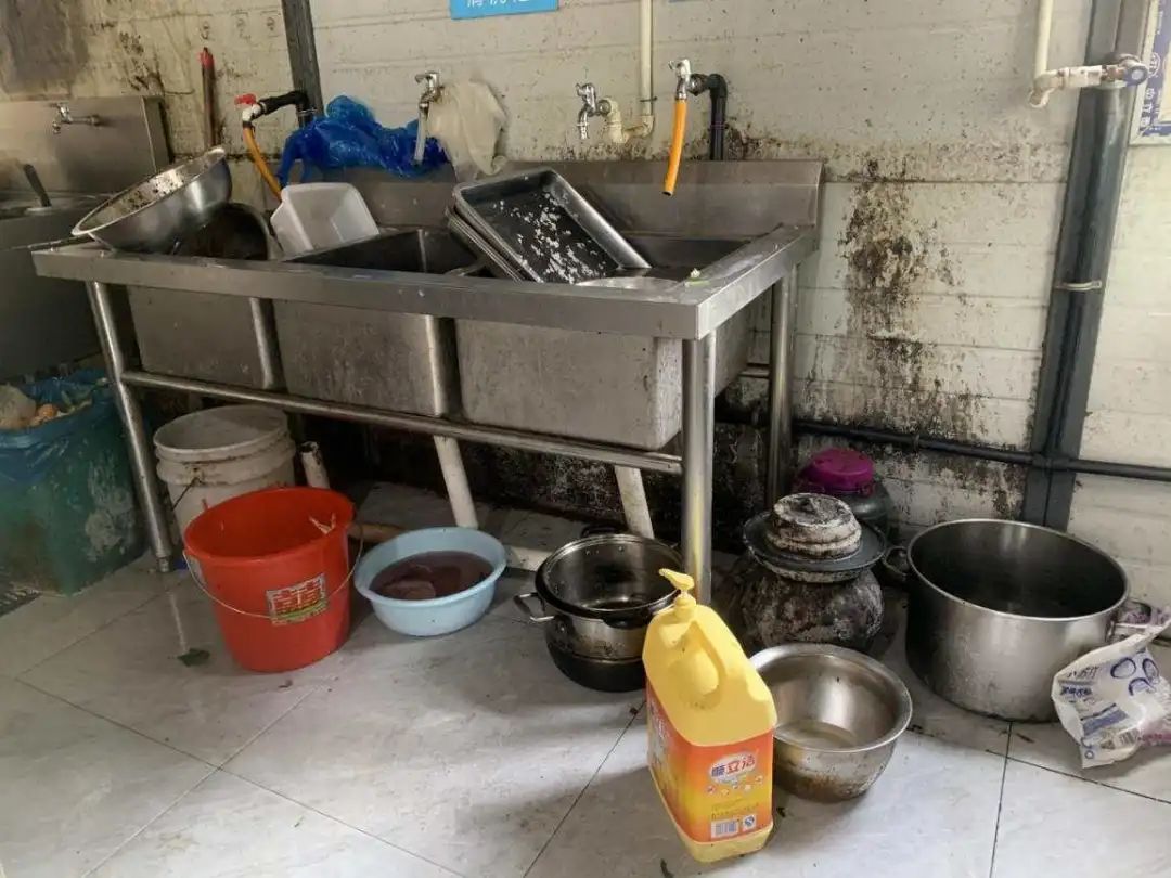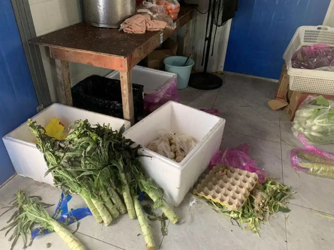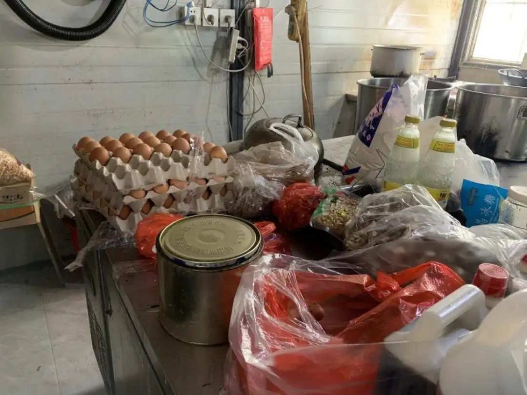 切配臺(tái)面雜亂且有未經(jīng)清洗的雞蛋