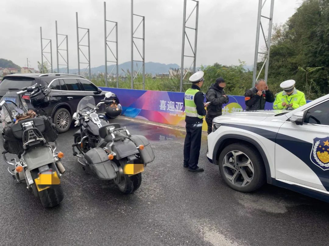 根據(jù)《浙江省高速公路運行管理辦法》第24條1款3項規(guī)定,對兩位騎手以機動車違反禁令標志的違法行為處以罰款100元、記1分的處罰。
