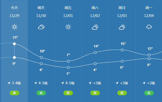 近期冷空氣活動頻繁,總體強度不強,影響過程也不長,但畢竟時值深秋,氣溫已在來回振蕩之中逐漸走低。北方有一股冷空氣正在東移南下,全市將有一次較明顯的降溫、風力增大和弱降水過程,日平均氣溫過程降溫幅度可達6~8℃。