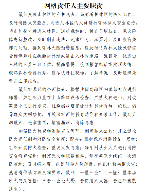 按照“林長制”、森林防滅火行政首長負(fù)責(zé)制等制度,制定森林防滅火工作任務(wù)清單,實行定格、定人、定責(zé)和清單式管理,構(gòu)建完善縱向到底、橫向到邊的防控體系。目前全市共劃定森林防滅火責(zé)任區(qū)網(wǎng)格202處,配齊配足網(wǎng)格員300余名。