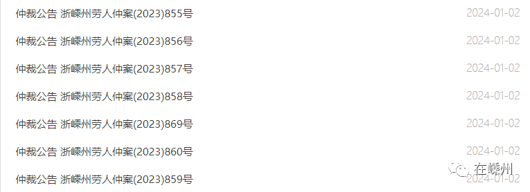 浙嵊州勞人仲案(2023)860號仲裁裁決書裁決如下: