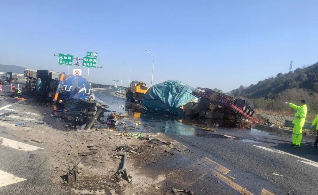 兩輛大貨車側(cè)翻在匝道內(nèi)