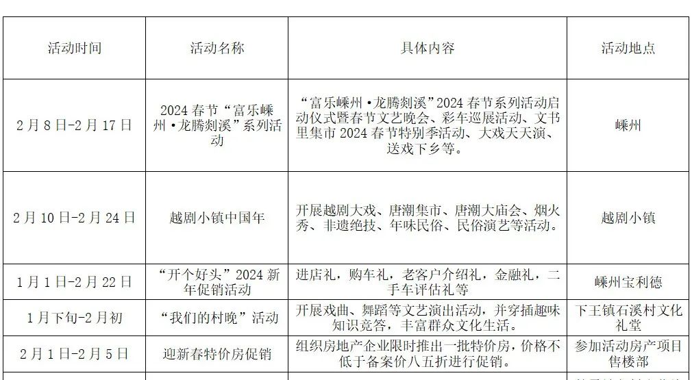 2.“富樂嵊州·龍騰剡溪”新春文旅特別季——“瑞龍迎春”新春超市。在文化廣場組織開展沉浸式的年味文化活動,如剪紙、春聯(lián)、年貨展銷等。
