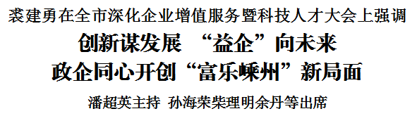 2月20日上午,全市深化企業(yè)增值服務(wù)暨科技人才大會召開。市委書記裘建勇強(qiáng)調(diào),要深入學(xué)習(xí)貫徹習(xí)近平總書記考察浙江重要講話和考察紹興重要指示精神,全面貫徹全省“新春第一會”和高質(zhì)量項目建設(shè)推進(jìn)會和紹興全市深入實施“八八戰(zhàn)略”全力推進(jìn)高質(zhì)量項目建設(shè)大會精神,始終保持干事的激情、創(chuàng)業(yè)的熱情、攻堅的豪情,久久為功打好“項目為王、企業(yè)為本、創(chuàng)新為要”組合拳,營造“尊重企業(yè)、敬重客商”濃厚氛圍,政企同心謀跨越,攜手并進(jìn)再出發(fā),共同開創(chuàng)“富樂嵊州”新局面,為譜寫新時代“膽劍篇”作出嵊州更大貢獻(xiàn)。