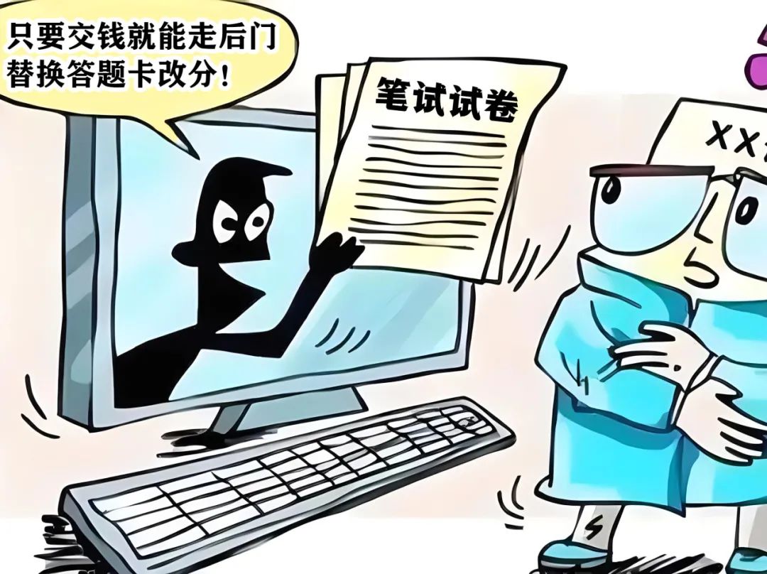 不法分子自稱認(rèn)識閱卷員,只要肯花錢打點即可走后門以替換答題卡的方式來進(jìn)行改分,借此騙取當(dāng)事人一筆不小的"打點費用"。