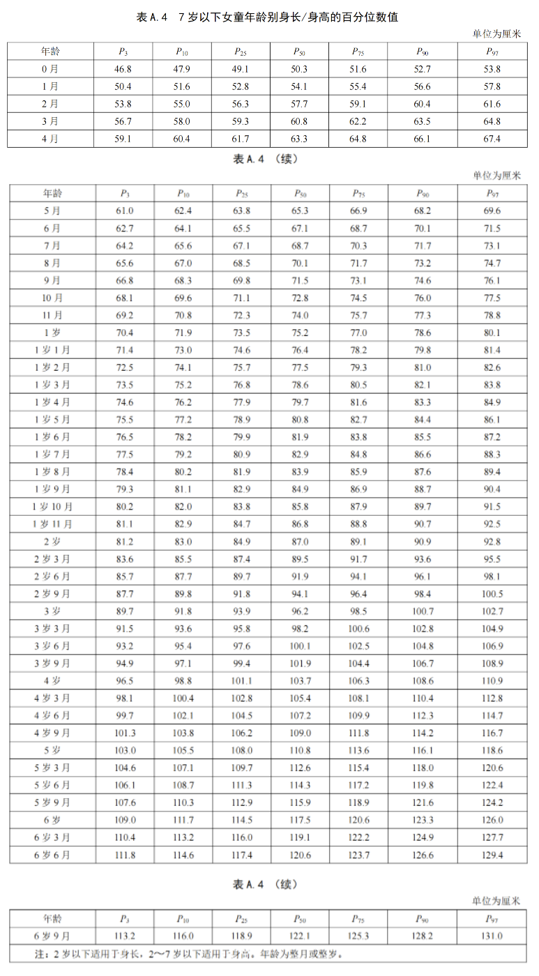 《7 歲以下兒童生長(zhǎng)標(biāo)準(zhǔn)》WS/T 423—2022