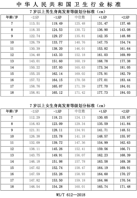 《7 歲以上兒童生長(zhǎng)標(biāo)準(zhǔn)》