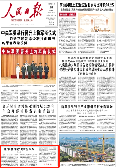 “小日記”撬動“大治理”、續(xù)寫新故事。從依托5G、人工智能等技術(shù)手段上線“民情大腦”,到建立民情日制度,健全落實民情大走訪機(jī)制,推動黨員干部沉到一線辦實事,再到創(chuàng)新推出“企情日記”,及時幫助企業(yè)紓困解難……新時代的“民情日記”常寫常新,不斷激發(fā)歷久彌新的生命力,見證基層治理能力和水平的穩(wěn)步提升。