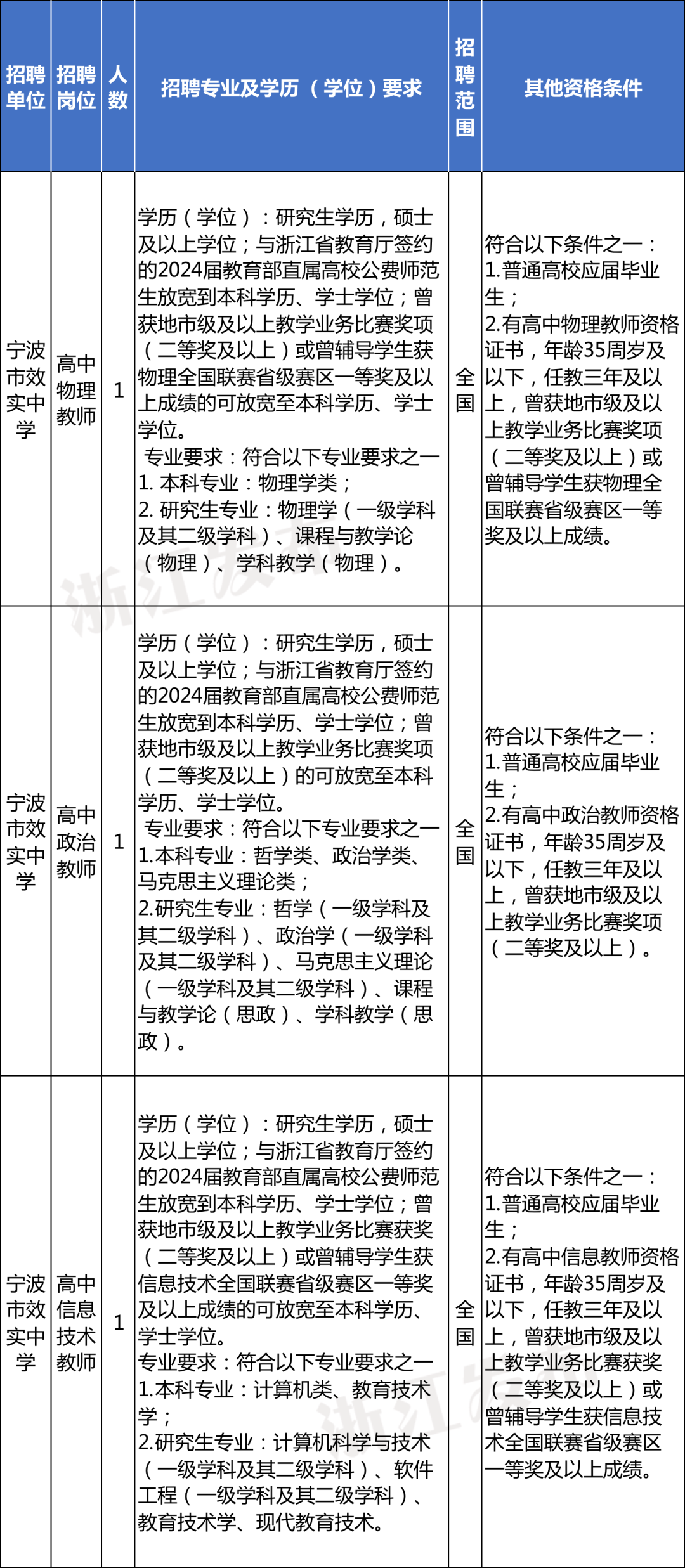 寧波市效實中學(xué)創(chuàng)建于1912年,為浙江省首批一級普通高中特色示范學(xué)校。本次招聘3人。