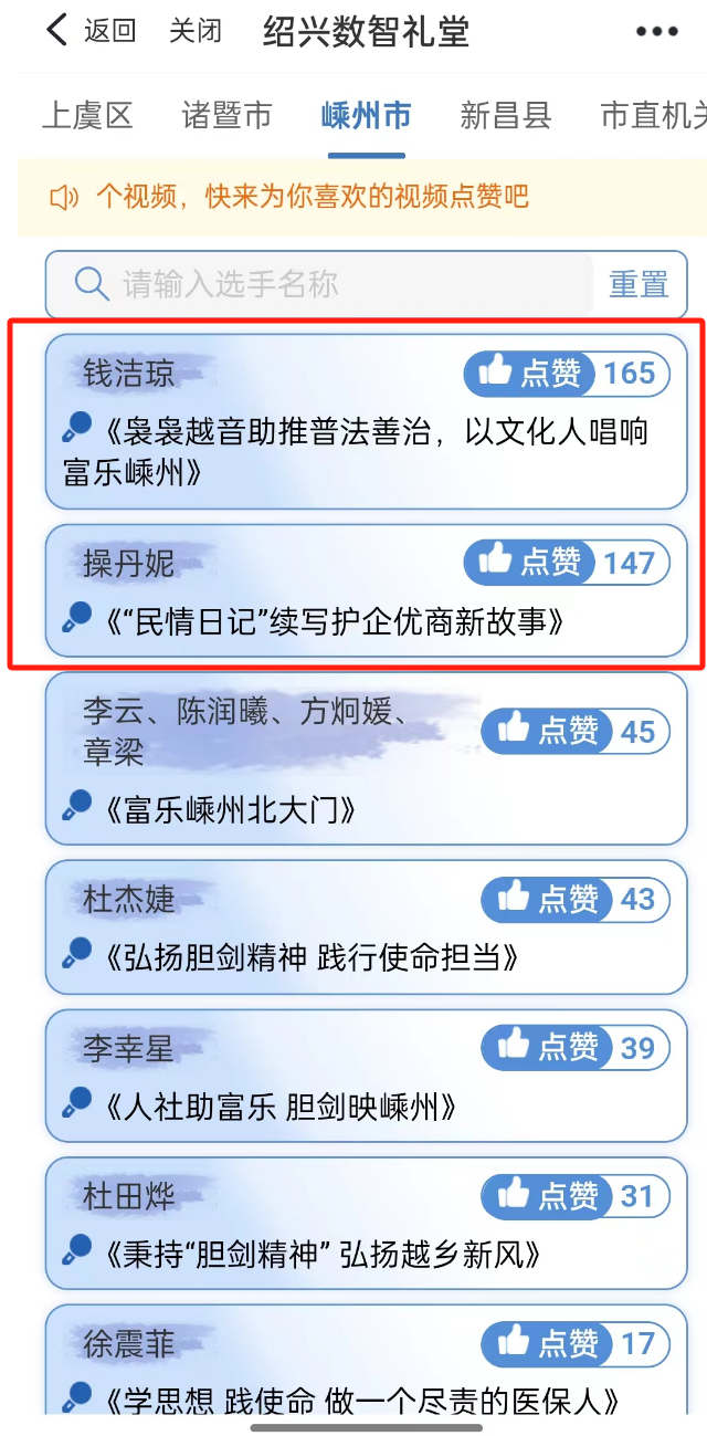 04進(jìn)入嵊州市賽區(qū)為她們點(diǎn)贊