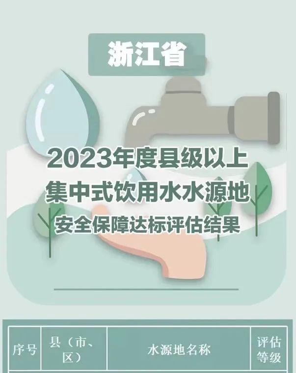 近日,浙江省水利廳、省生態(tài)環(huán)境廳公布2023年度縣級(jí)以上集中式飲用水水源地安全保障達(dá)標(biāo)評(píng)估結(jié)果。
