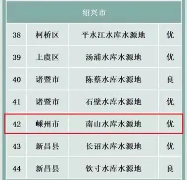 全省84個(gè)縣級(jí)以上集中式飲用水水源地中,70個(gè)等級(jí)為優(yōu),14個(gè)等級(jí)為良。嵊州市南山水庫(kù)水源地為優(yōu)。