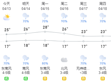 今天多云到陰,夜里到明天陰有陣雨或雷雨,部分中到大雨,有雷雨時可伴有短時強(qiáng)降水和局地7~9級雷暴大風(fēng)等強(qiáng)對流天氣,偏東風(fēng)3級,明天最高氣溫:25~26℃,明天最低氣溫:17~18℃,后天:多云到陰,18~28℃。