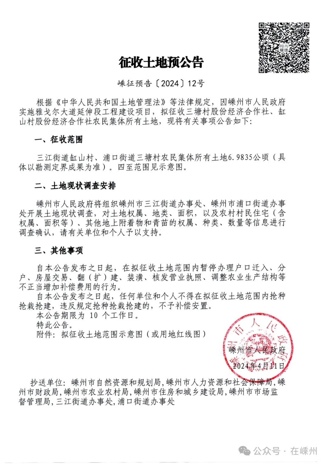 總面積近70000平!征地公告來襲!涉及三江街道、浦口街道