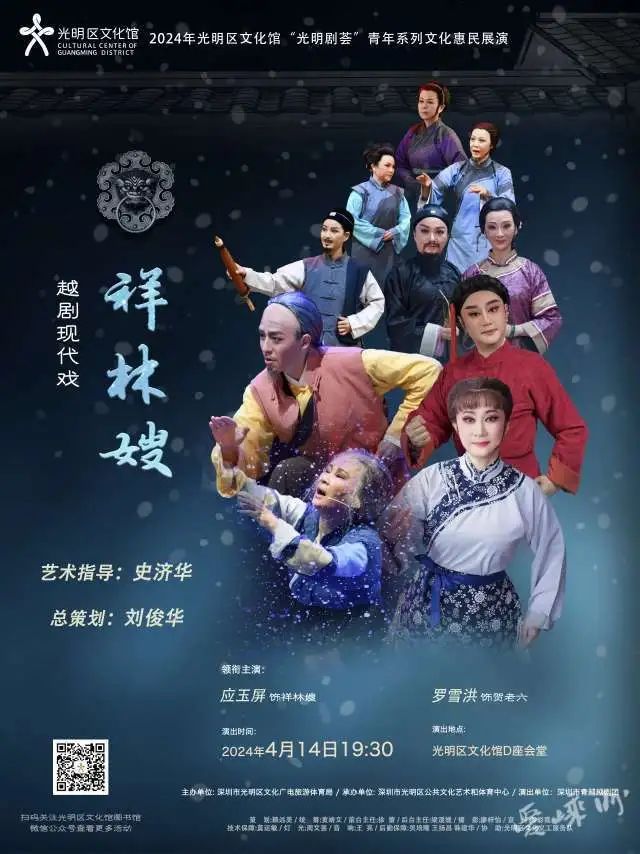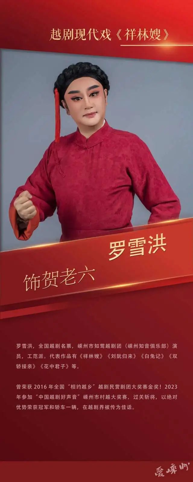 △四月十四日,深圳青越越劇團(tuán)將在深圳光明區(qū)文化館劇場上演該團(tuán)拿手好戲《祥林嫂》,為增加劇情色彩,突出現(xiàn)代戲男角男演,提升劇目演出效果,他們特邀嵊州“村越大賽”冠軍羅雪洪加盟,擔(dān)綱“賀老六”一角。今天正在劇場有序走臺(tái),磨合。力爭正式演出圓滿成功。